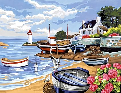 L Art Et La Maniere Peinture Au Numero Motif Rivage Breton 30 X 40 Cm Couleurs Assorties Amazon Fr Fournitures De Bureau