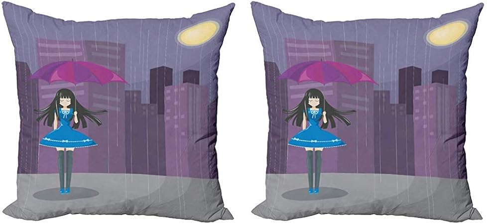July Parapluie Fille Decoratif Taie D Oreiller Dessin Anime Graphique Ou Femme Qui Pleure Dans La Ville De Nuit Pluvieuse Amazon Fr Cuisine Maison